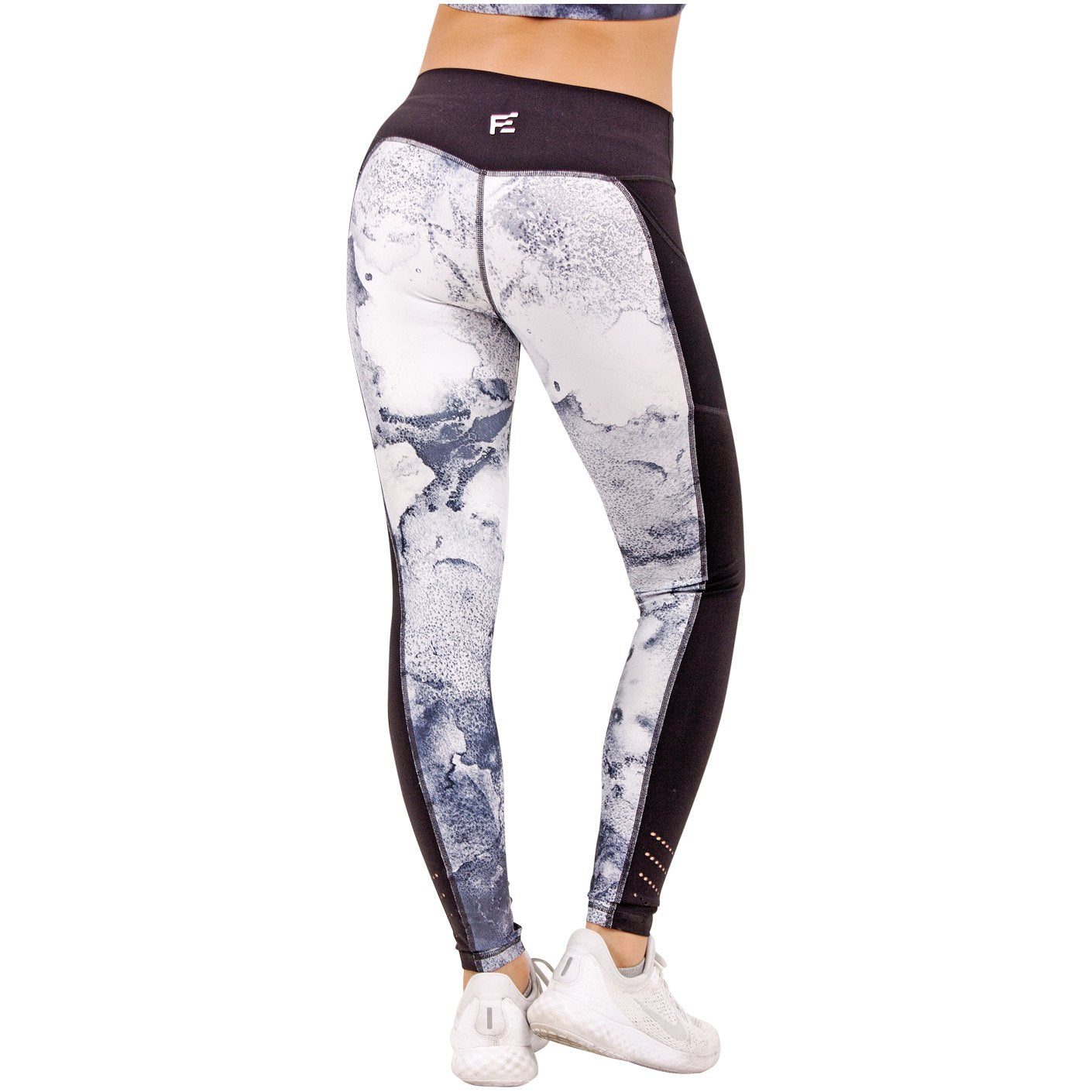 FLEXMEE 946071 | Marble Sublimated Mid Rise Sports Leggings With Pockets | Microfiber
