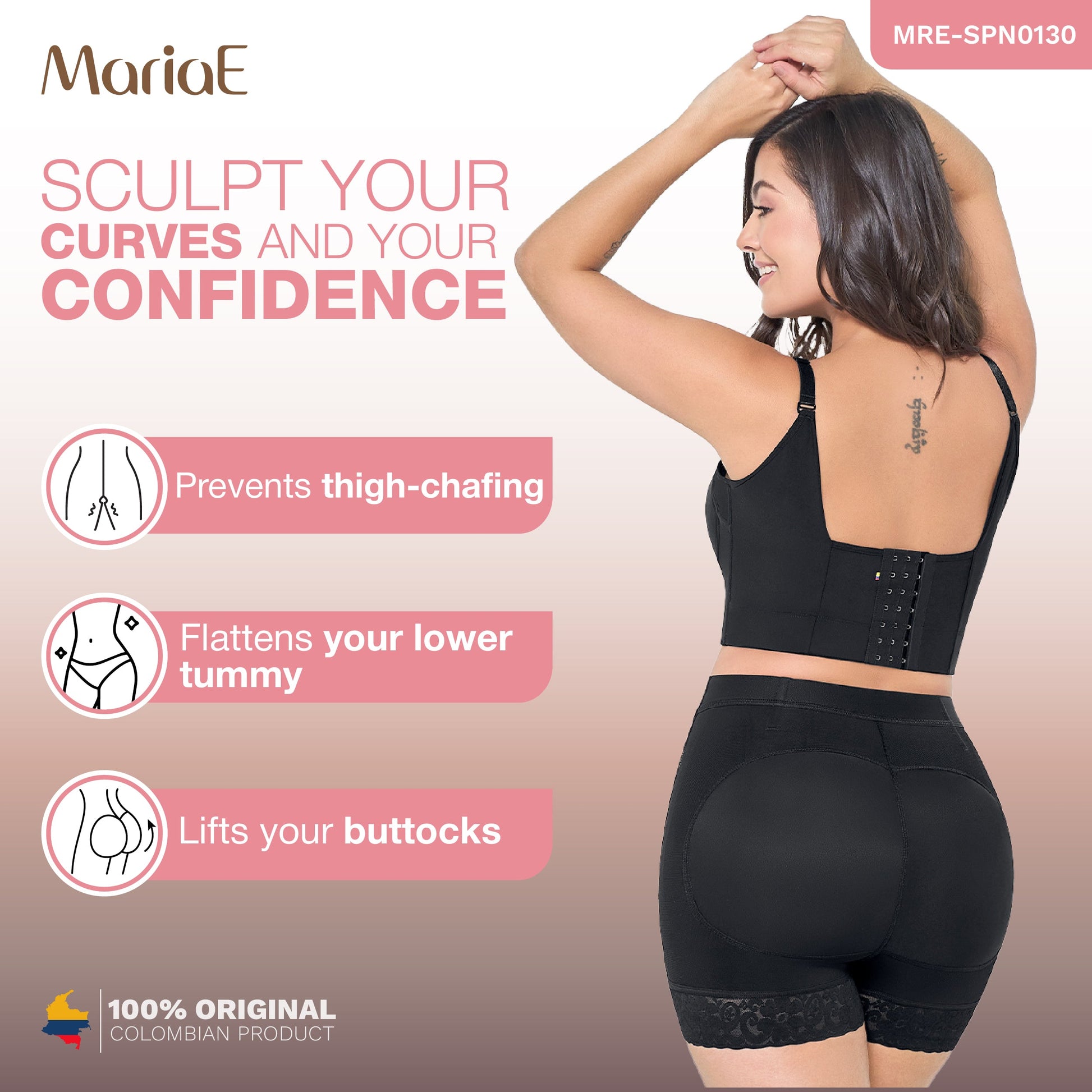 MARIAE SPN0130 Fajas Colombianas High Waisted Butt Lifter Shaper Shorts High Compression